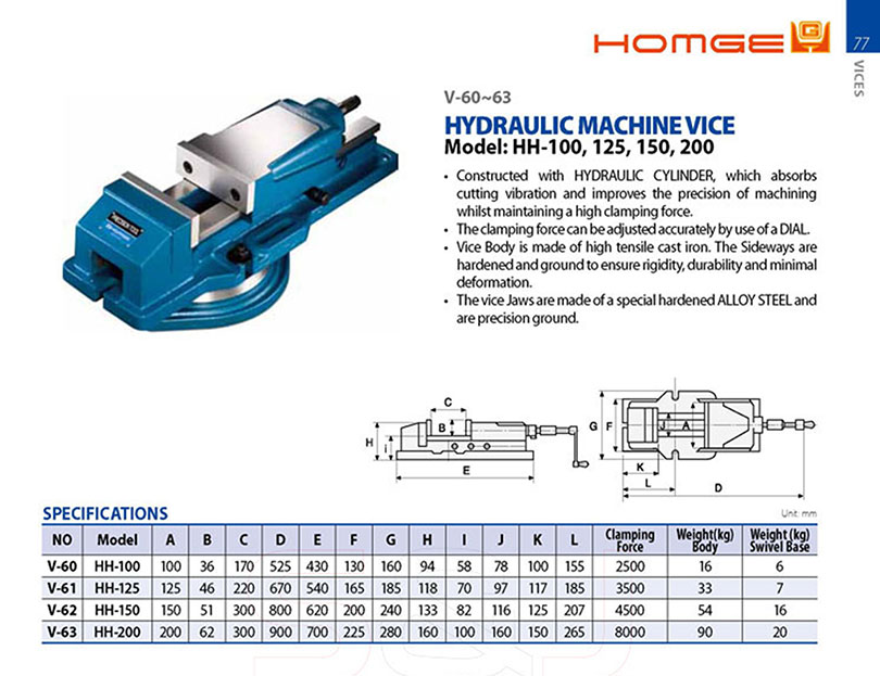 Ê tô thủy lực đế xoay 170mm, 220mm, 300mm