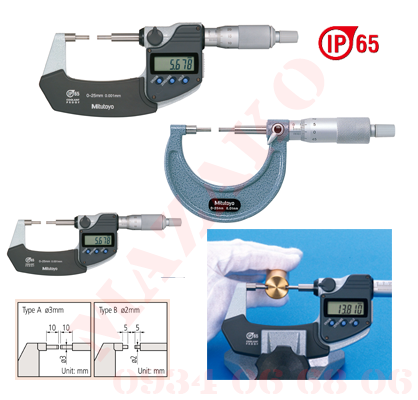 Panme dau dep mitutoyo loai dien tu do chia 0.001mm, khoang do 0-25mm 331-251, 331-261, 331-351, khoang do 25-50mm 331-252, 331-262, 331-352.. loai co do chia 0.01mm khoang do 0-25mm 111-215, 111-115, 131-115, khoang do 25-50mm 111-116... xuat xu Nhat Ban.