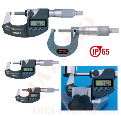 Panme do chieu day thanh ong mitutoyo 2 dau tron loai dien tu do chia 0.001mm khoang do 0-25mm 395-251, 395-351, khoang do 25-50mm 395-252, 395-352... loai co do chia 0.01mm khoang do 0-15mm 115-101, khoang do 0-25mmm 115-115, 295-115, khoang do 25-50mm 115-116... xuat xu Nhat Ban.