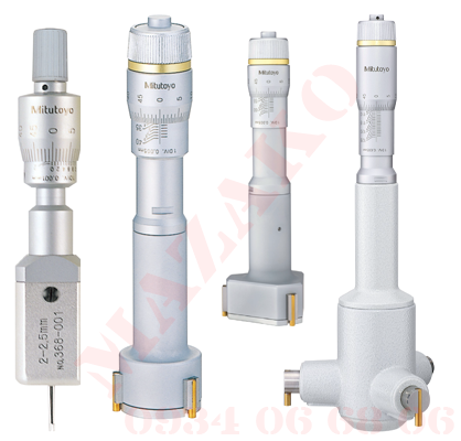 Panme do lo co mitutoyo 2 chau co do chia 0.001mm khoang 2-2.5mm 368-001, khoang do 2.5-3mm 368-002, khoang do 3-4mm 368-003... panme do lo 3 chau khoang do 6-8mm 368-161, khoang do 8-10mm 368-162, khoang do 10-12mm 368-163, khoang do 12-16mm 368-164... xuat xu Nhat Ban, do chinh xac cao.